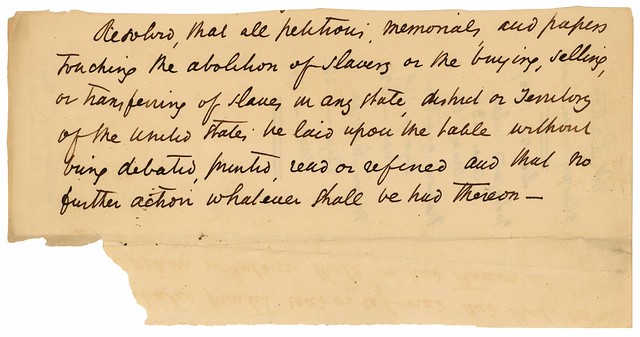 Resolution That All Petitions, Memorials, and Papers Relating to Slavery Be Laid Upon the Table without Being Debated, Printed, Read or Referred , 12/21/1837