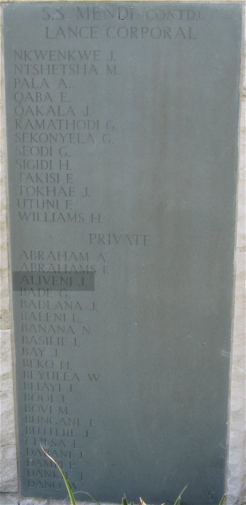 Private Jim Aliveni 8911, South African Native Labour Corps