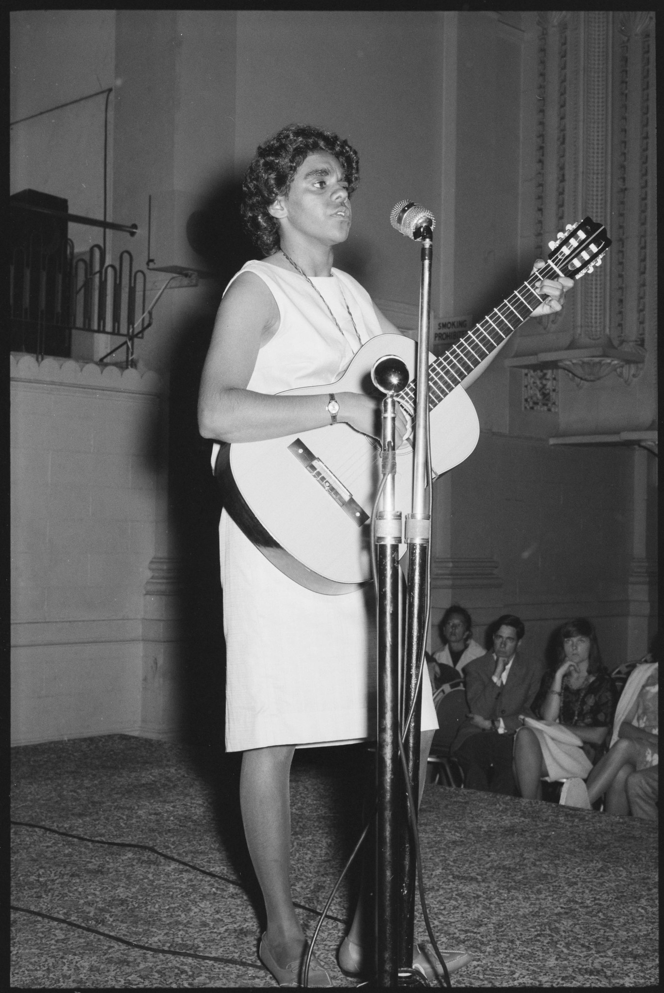 Jenny Bush, Aboriginal Folk Singer at the SAFA fundraising concert, Paddington Town Hall , 21 January 1965 / The Tribune