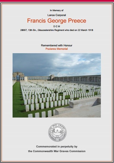 Private Francis G Preece 28667, Gloucestershire Regiment