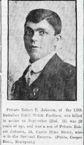 Private Robert Ellis Johnson 1208, Royal Welsh Fusiliers