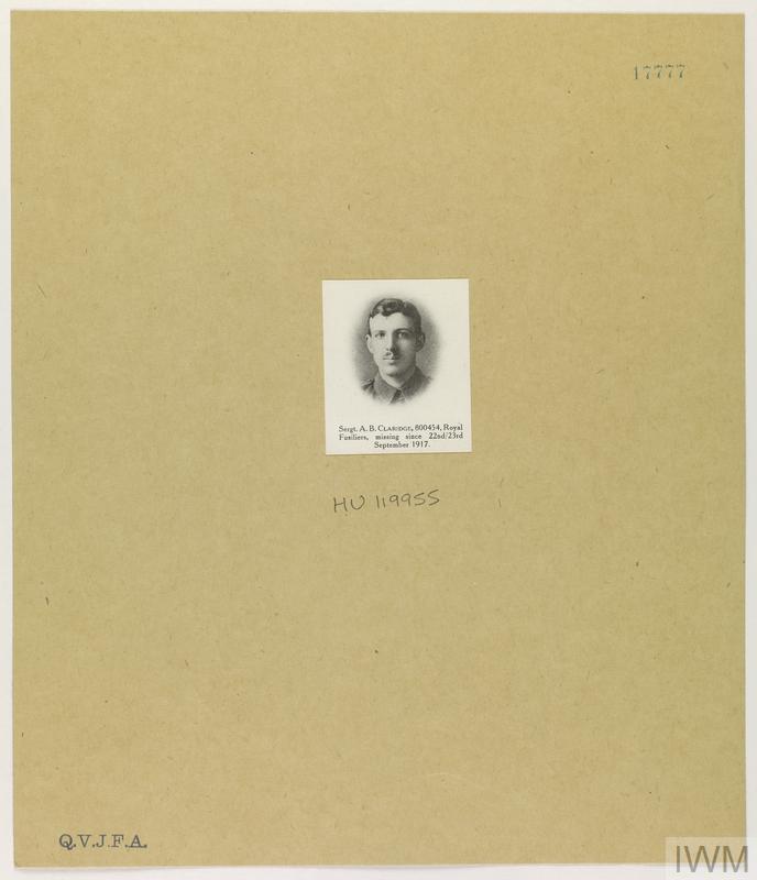 Sergeant Archibald Bernard Claridge 800454. Unit: 30th Battalion, London Regiment (Royal Fusiliers), attached to 26th Battalion, Royal Fusiliers. Death: 22 September 1917 to 23 September 1917 Missing in action Western Front