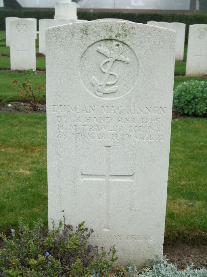 Deck Hand. Duncan MacKinnon 1145, H.M. Trawler 'Corona'