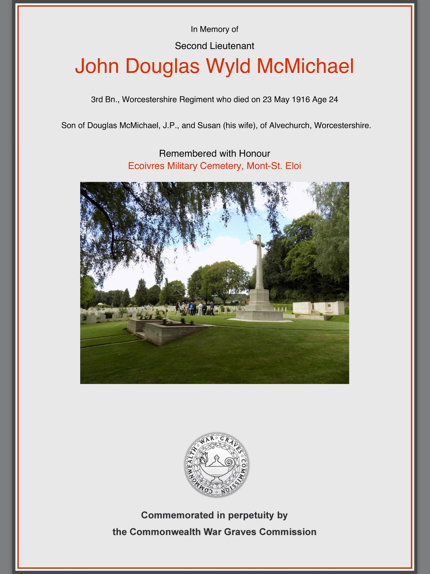 Second Lieutenant John Douglas Wyld McMichael , Worcestershire Regiment