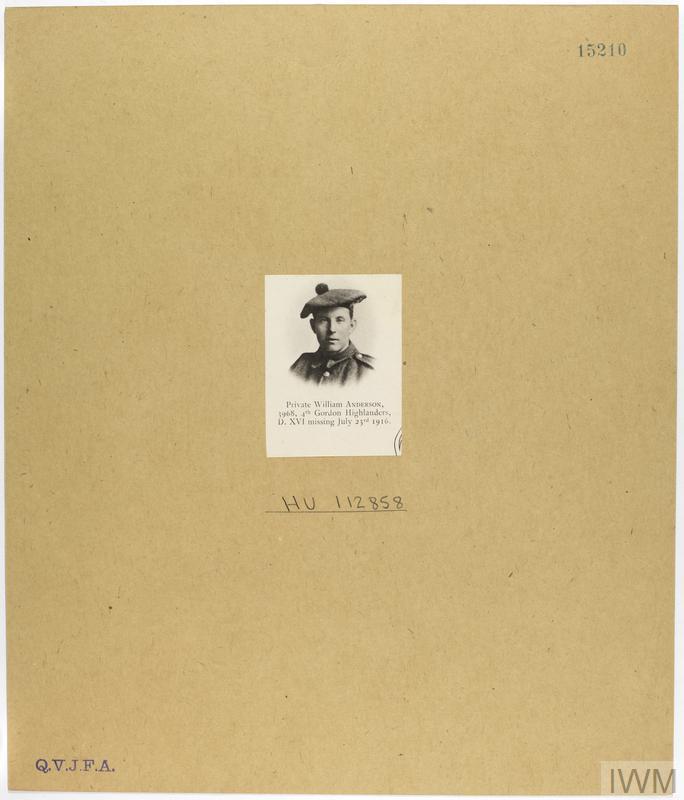 Private William Anderson 3968/201332. Unit: 1st/4th Battalion, Gordon Highlanders. Death: 23 July 1916, Somme, Western Front.