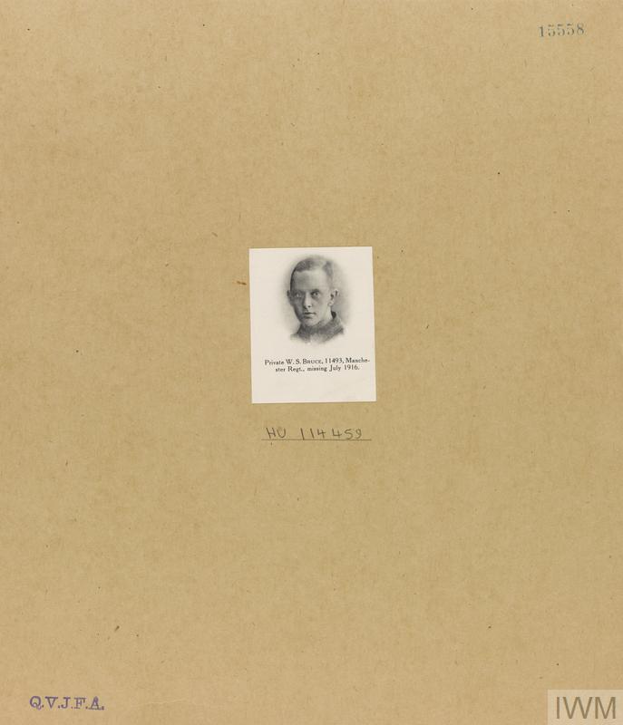 Private William Small Bruce 11493. Unit: 19th Battalion, Manchester Regiment. Death: 23 July 1916, Somme, Western Front. Commemorated on the Thiepval Memorial.