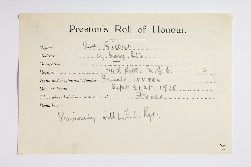 Private Gilbert Bell 155886, Machine Gun Corps (Infantry)
