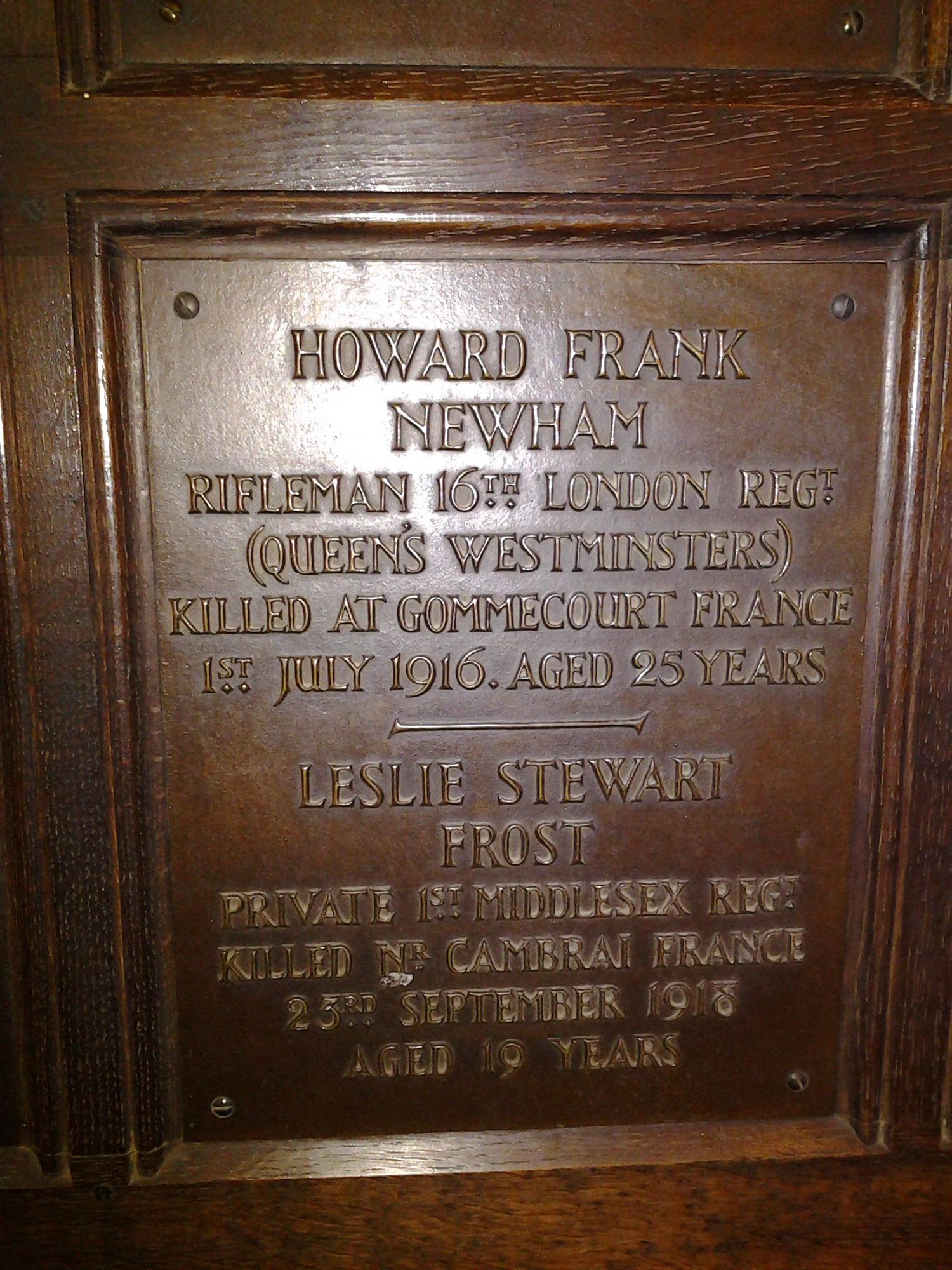 Private Leslie Stewart Frost G/96207, Middlesex Regiment