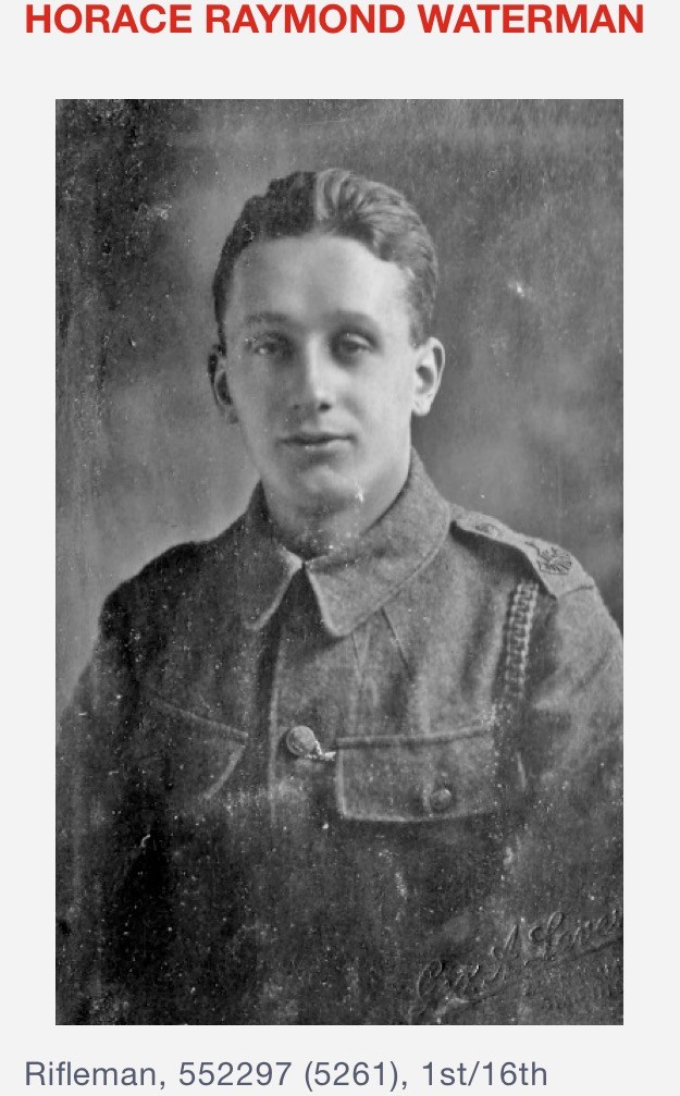 Private Horace Raymond Waterman 552297, 1/16th (QWR) London Regiment