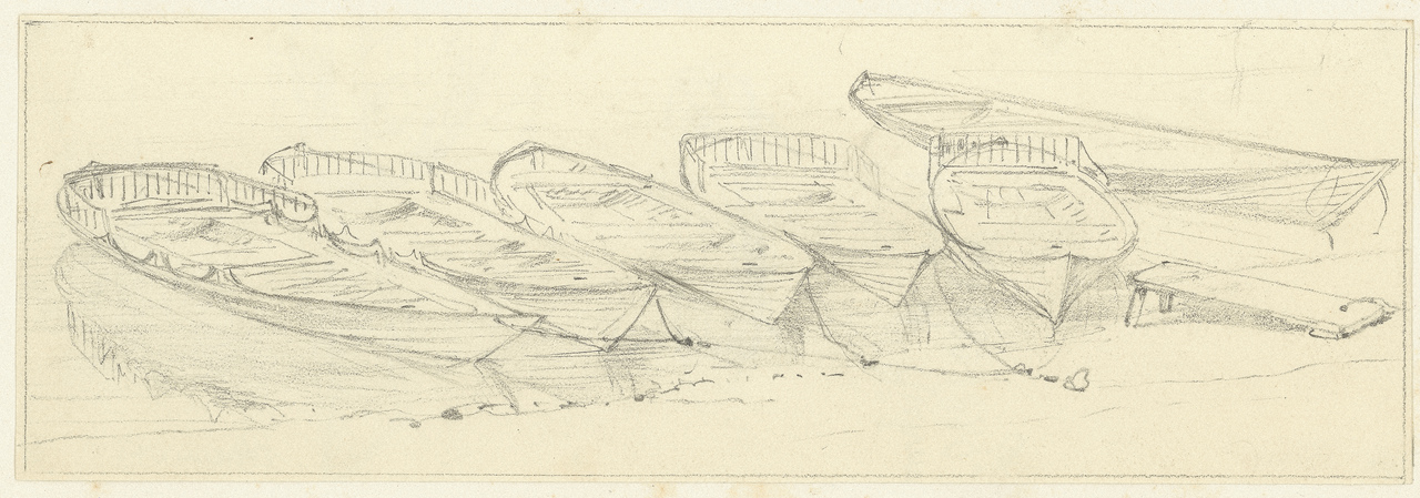 Wherries at Richmond, a study for the Shipping and Craft plate, with further studies on reverse. Mounted with PAE6406.