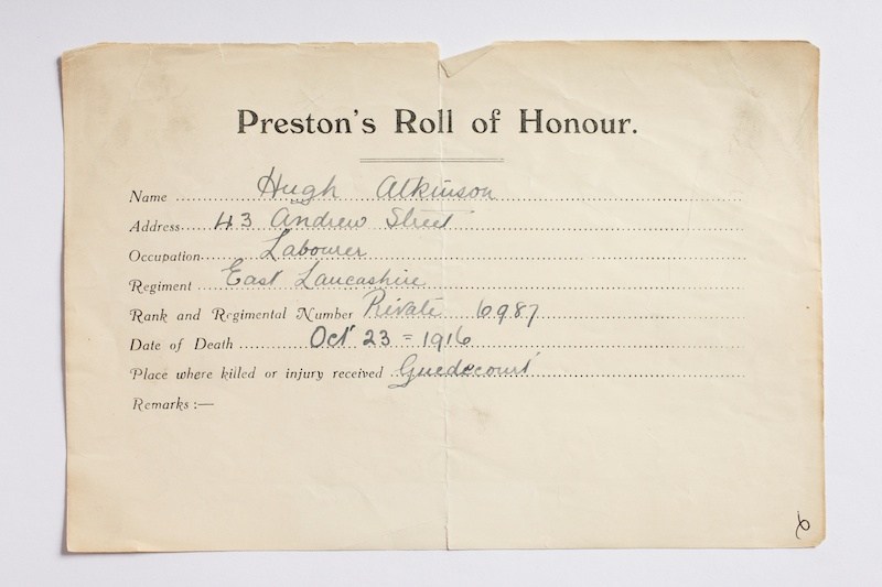 Private Hugh Atkinson 6987, East Lancashire Regiment