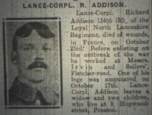 L/Cpl Richard Addison 13466, Loyal North Lancashire Regiment