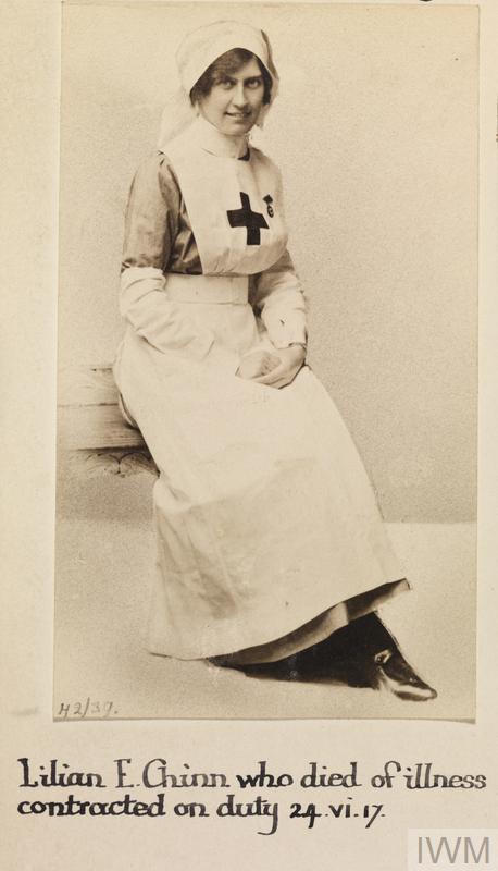 Lilian E Chinn, Voluntary Aid Detachments. Died of illness contracted on duty 24 June 1917.