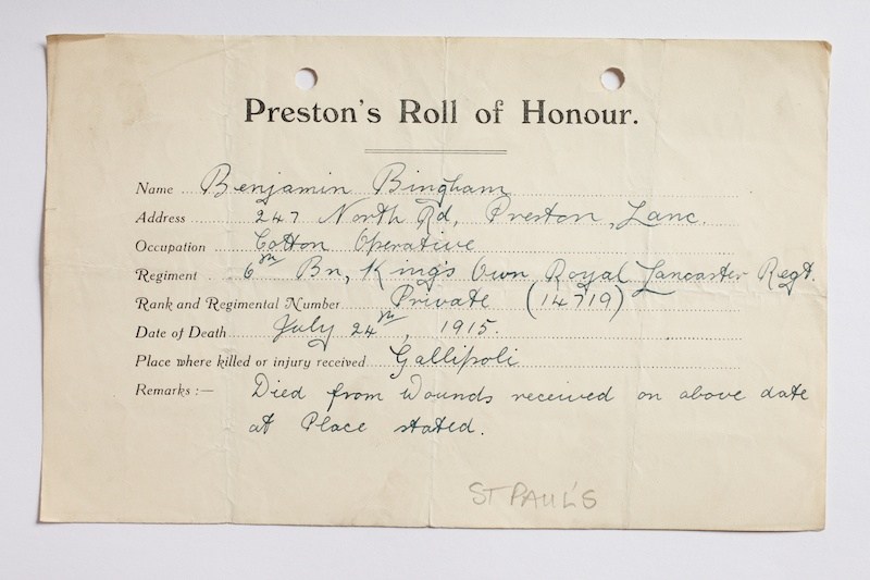 Private Benjamin Bingham 14719, King's Own (Royal Lancaster Regiment)
