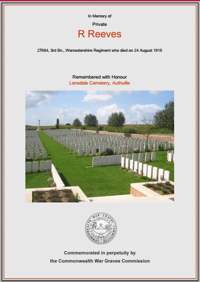 Private Edward George Beavon 202131, Royal Warwickshire Regiment