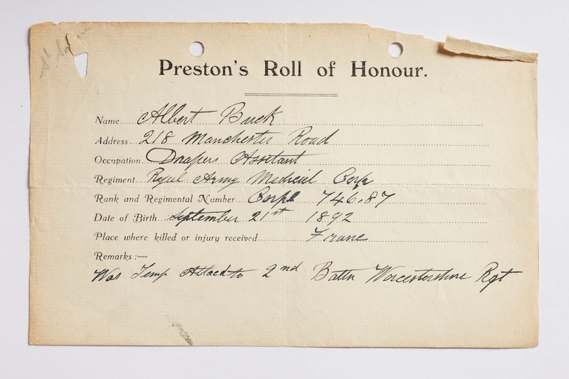 Lance Corporal Albert Buck 74687, Royal Army Medical Corps