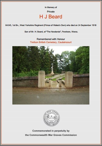 Private Henry J Tyson 48388, Royal Warwickshire Regiment