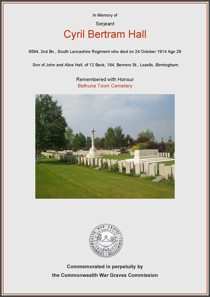Lance Serjeant Cyril Bertram Hall 6594, Prince of Wales's Volunteers (South Lancashire Regiment)
