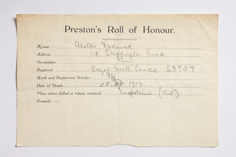 Private Frederick Alston 23797, The Loyal North Lancashire Regiment