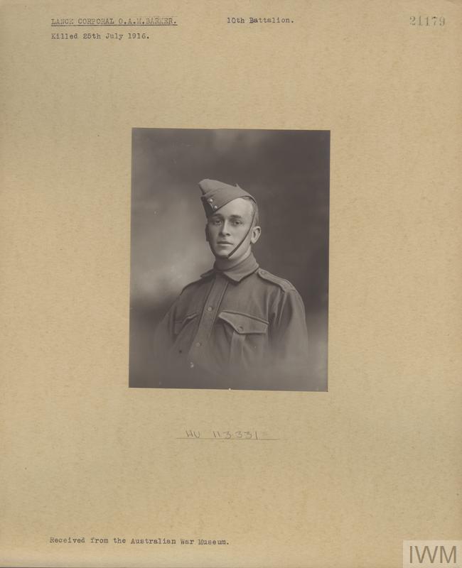 Lance Corporal Oliver Albert Mortimer Barker 187. Unit: 10th Battalion, Australian Infantry, Australian Imperial Force. Death: 25 July 1916, Somme, Western Front.