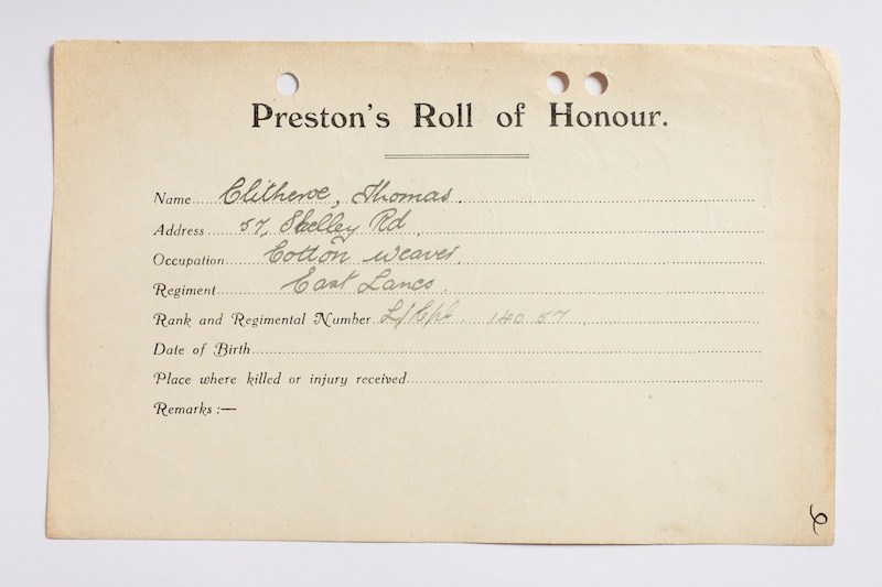 Lance Corporal Thomas Clitheroe 14057, East Lancashire Regiment