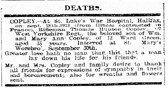 Private Thomas Copley 39640, West Yorkshire Regiment