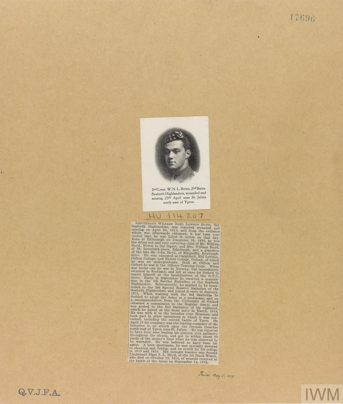 Second Lieutenant William Alan Copeland. Unit: 1st Battalion, Royal Scots (Lothian Regiment). Death: 25 April 1915 Killed in action near Ypres Western Front