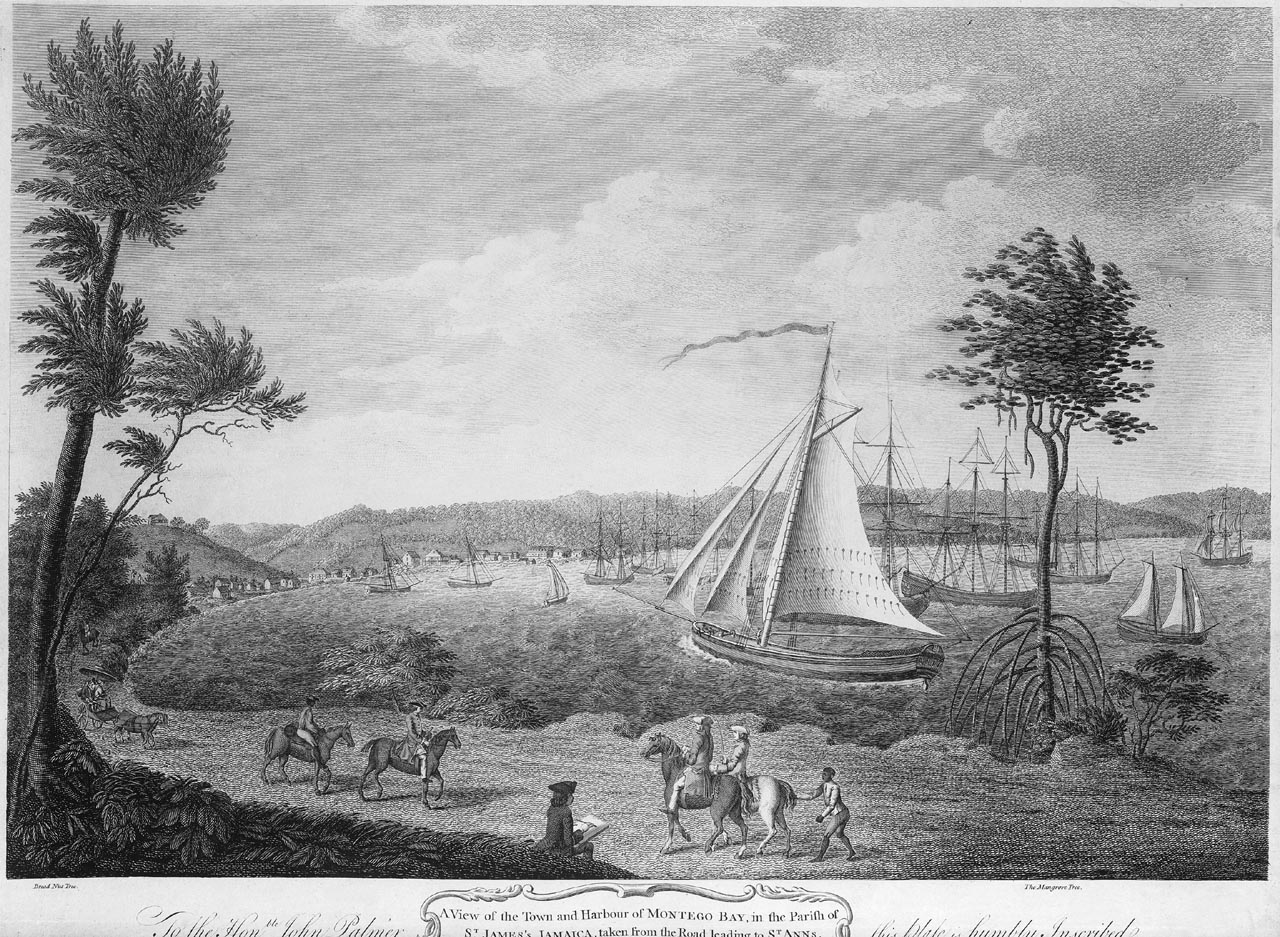 A View of the Town and Harbour of Montego Bay, in the Parish of St James, Jamaica, taken from the Road leading to St Anns. Print