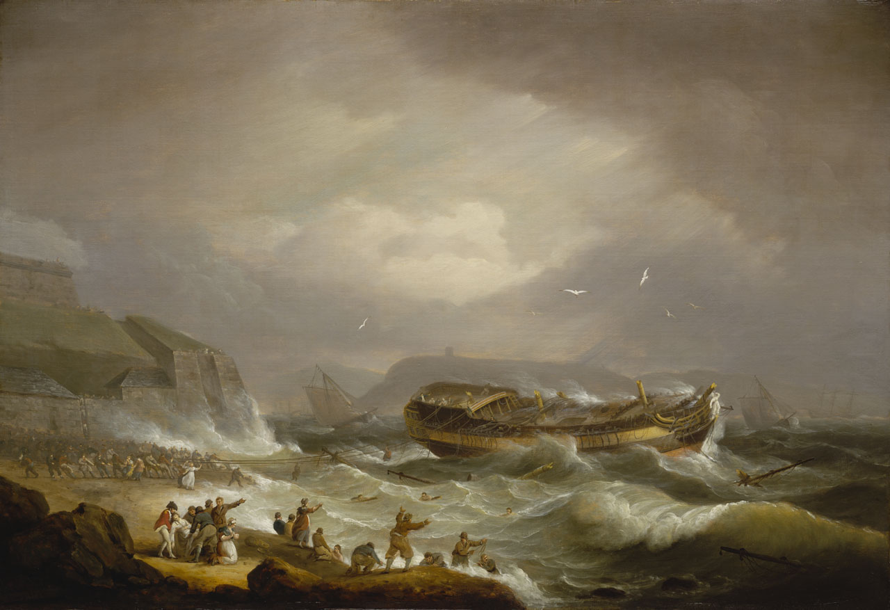 The Wreck of the East Indiaman 'Dutton' in Plymouth Sound, 26 January 1796. (Updated, March 2015) The painting interprets an event from the life of Admiral Sir Edward Pellew (1757-1833), 1st Viscount Exmouth. He lived in Devon, as did Luny from