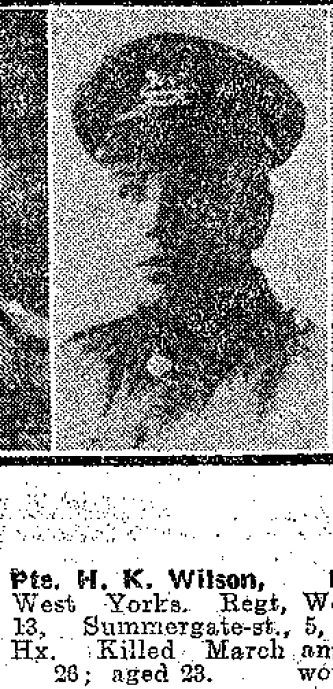 Private Harold Kershaw Wilson 21/27, West Yorkshire Regiment (Prince of Wales's Own)