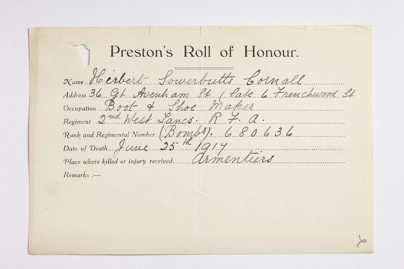 Bombardier Herbert Sowerbutts Cornall 680636, Royal Field Artillery