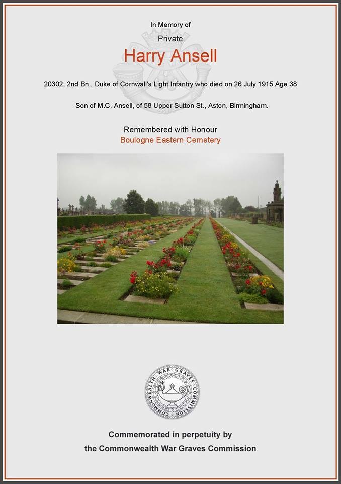 Private Harry Ansell 20302, Duke of Cornwall's Light Infantry