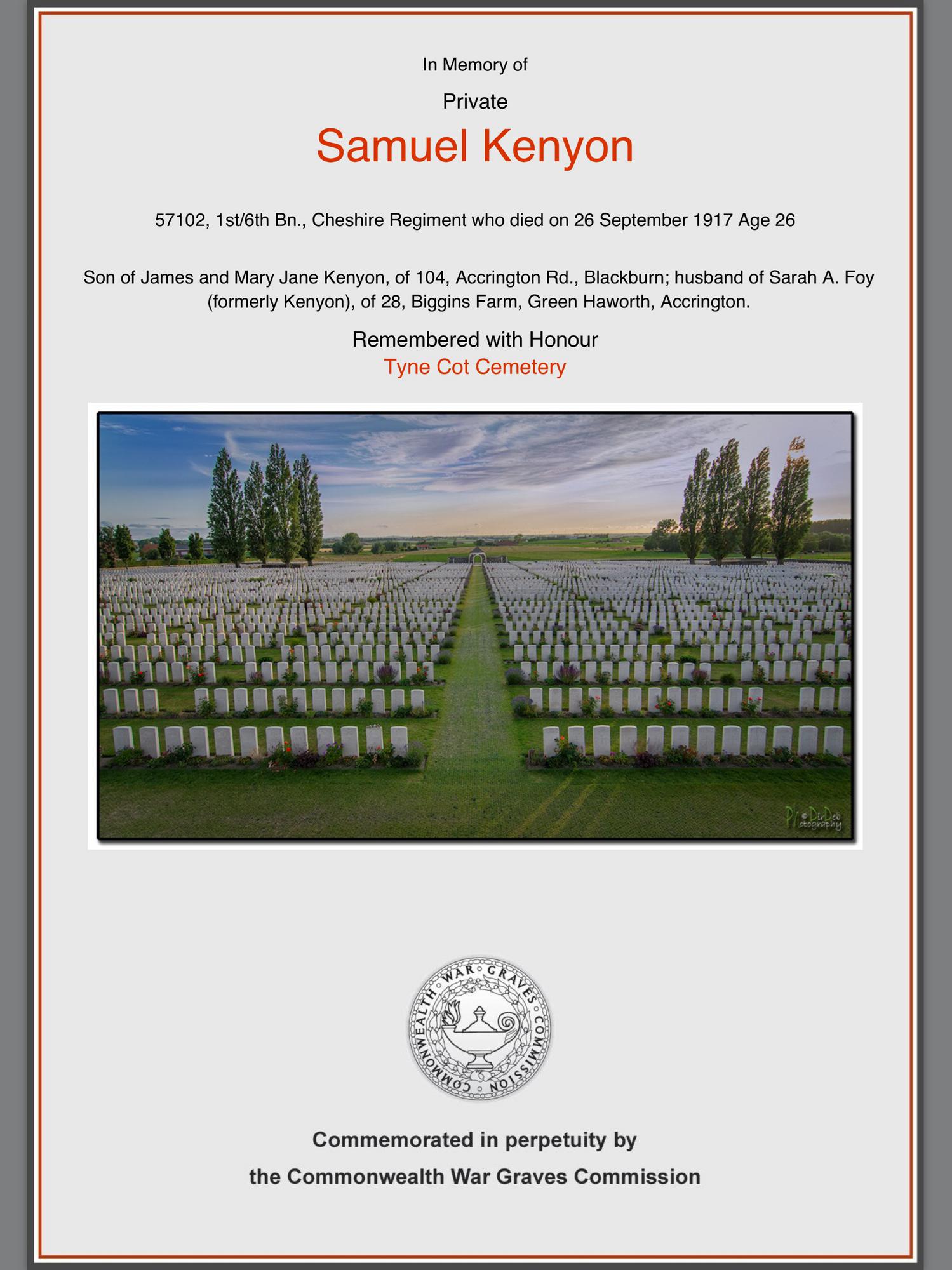 Second Lieutenant Arthur Leslie Sutcliffe. Unit: 6th Battalion, South Staffordshire Regiment, attached to Royal Flying Corps as an Observer. Death: 26 September 1917 Missing in action between St.Julien and Zounebeke Western Front