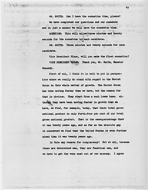 First Kennedy Nixon Debate September 26, 1960, Page 49/54
