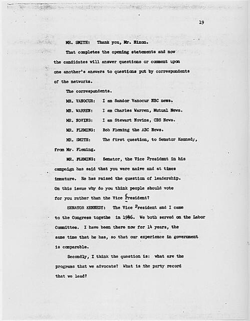 First Kennedy Nixon Debate September 26, 1960, Page 19/54