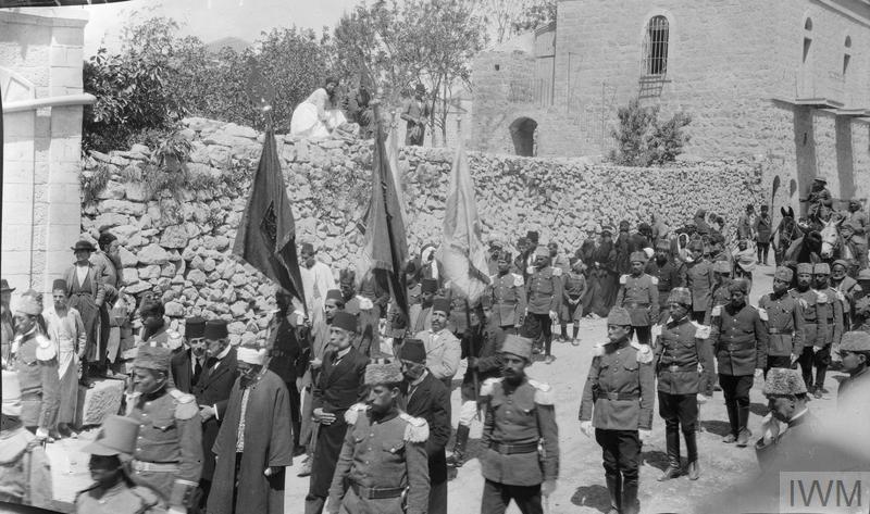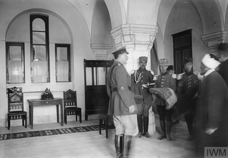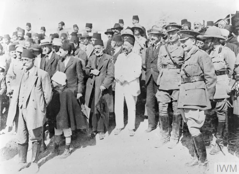 De gauche à droite : le lieutenant Couderc, officier français, Mahmoud Bey, Ministre de la guerre du royaume du Hedjaz , le commandant Cousse, chef de la Mission militaire française du Hedjaz et le lieutenant Mustafa, aide de camp, Ya
