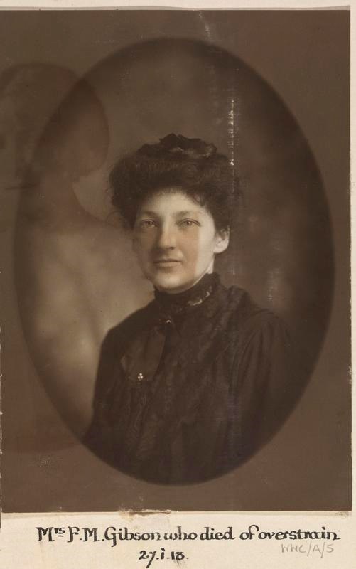 Mrs F M Gibson, Joint War Committee. Died of overstrain 27 January 1918.