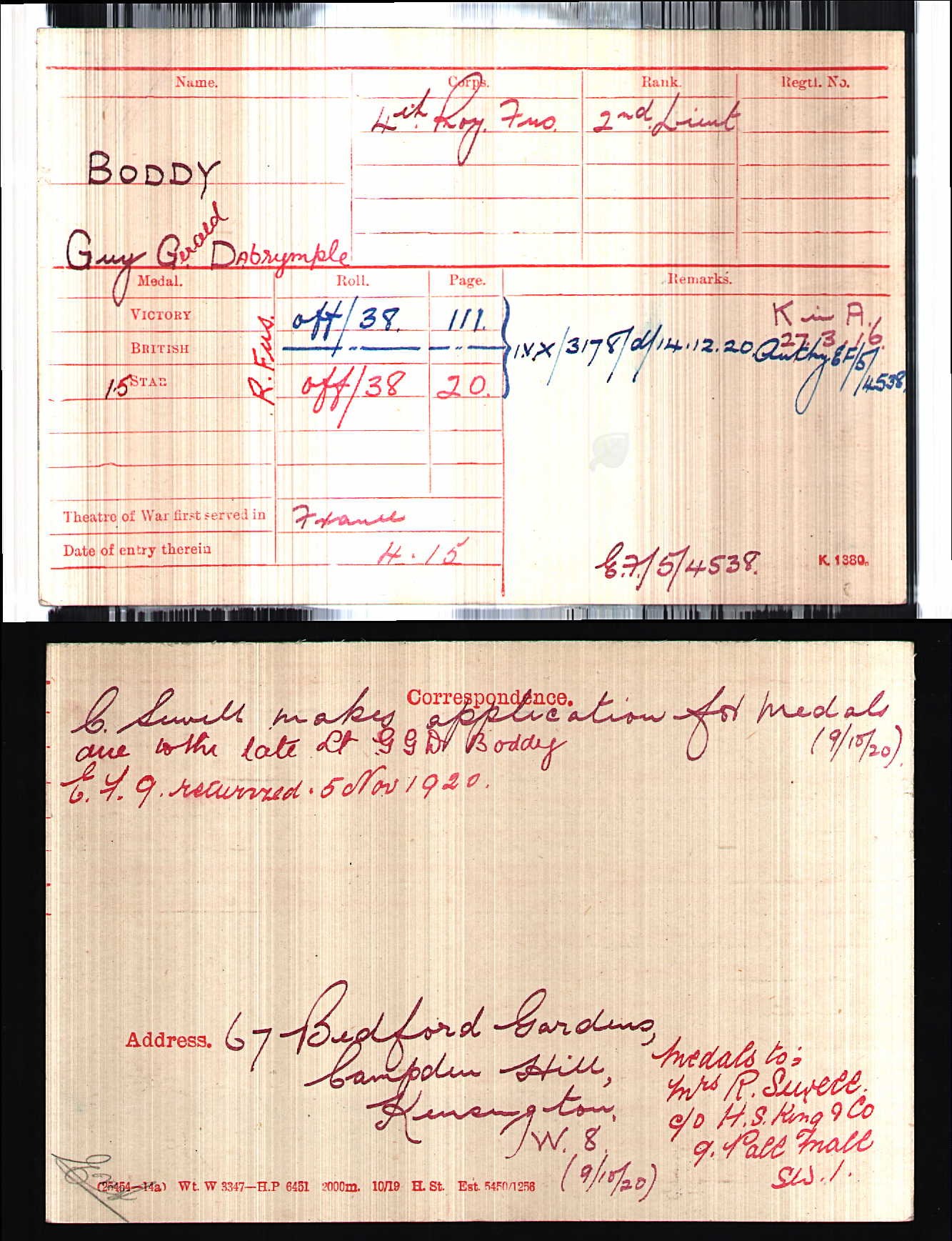 Second Lieutenant Guy Gerald Dalrymple Boddy , Royal Fusiliers (City of London Regiment)