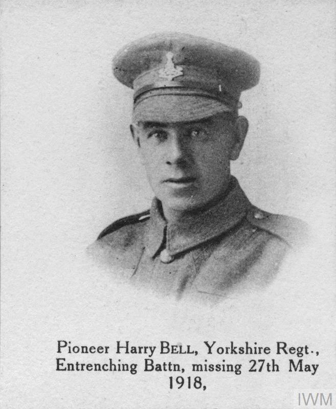 Pioneer Harry Bell. Unit: Entrenching Battalion, Yorkshire Regiment. Death: 27 May 1918