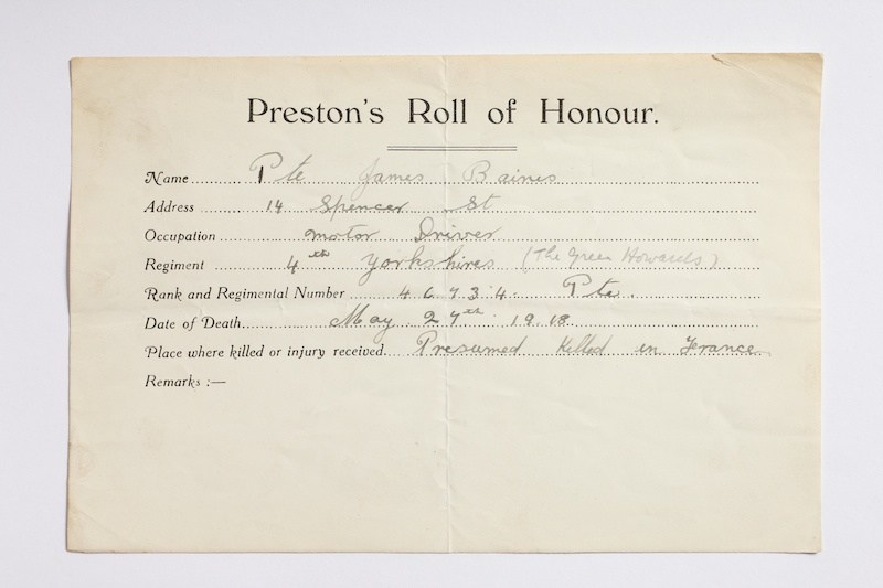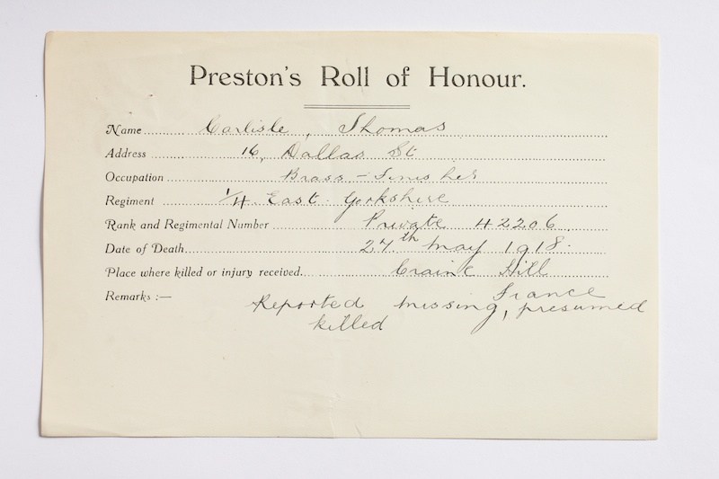 Lieutenant Paul Wrey Gardiner. Unit: 4th Battalion, Manchester Regiment, attached to the 1st Battalion, Worcestershire Regiment. Death: 27 May 1918, killed in action, Aisne, Western Front. Commemorated on the Soissons Memorial.