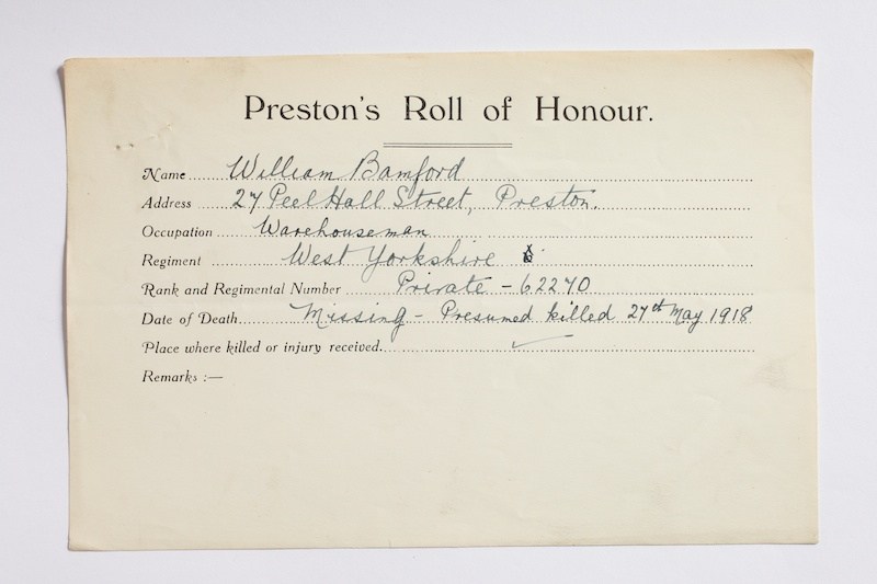 Private William Bamford 62270, West Yorkshire Regiment (Prince of Wales's Own)