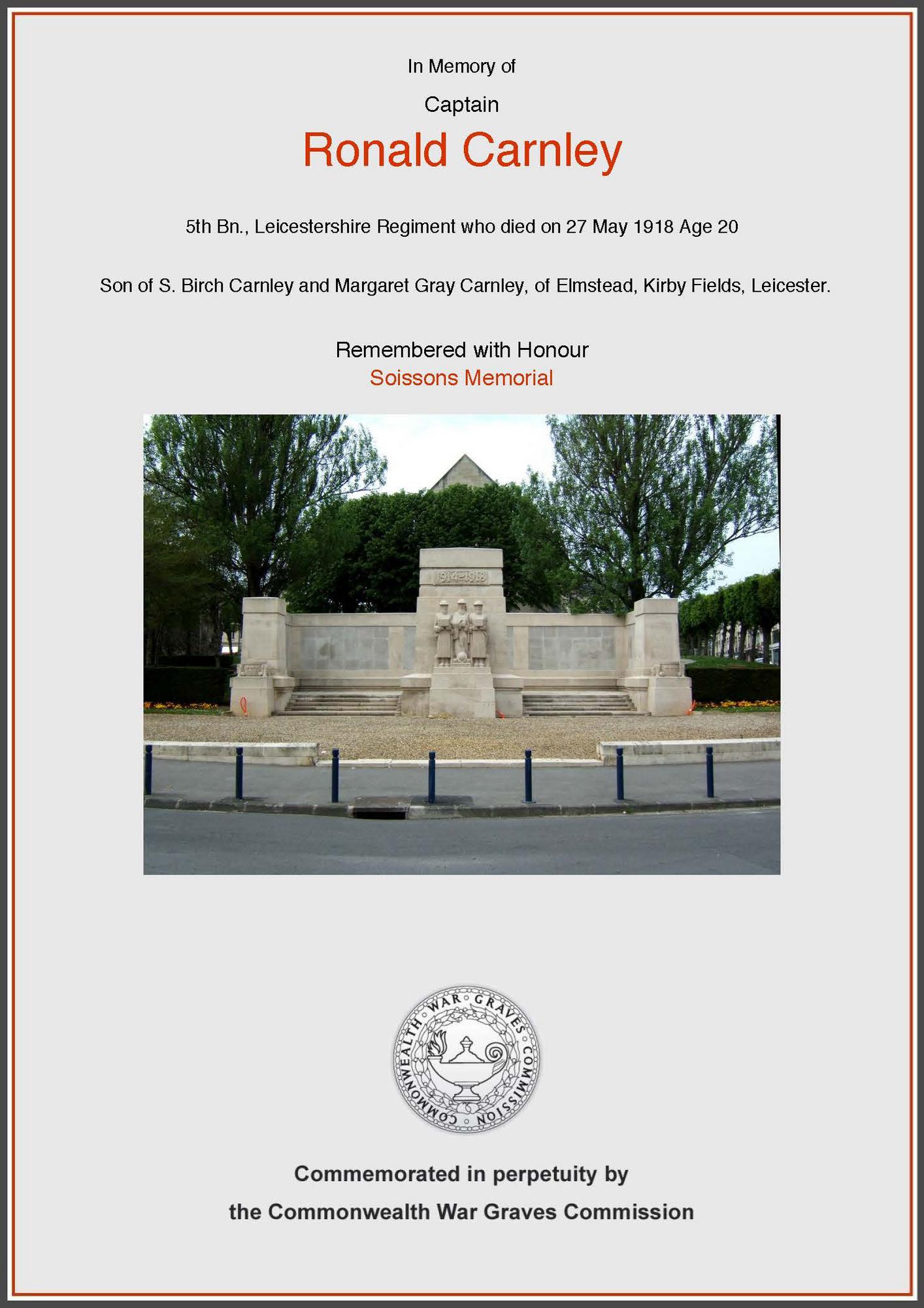 Private Ernest J Kendall 204110. Unit: Worcestershire Regiment. Death: 27 May 1918 missing in action.