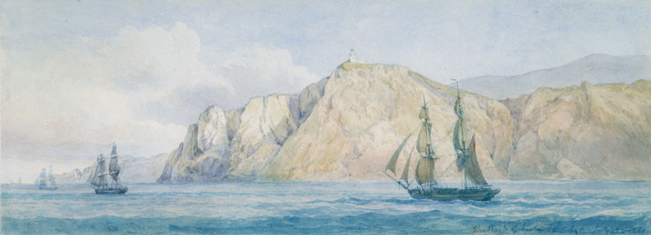 The Rock of Lisbon, NE by E, July 27 1861. Schetky made his last visit abroad in the summer of 1861 at the age of 82. The two-week passage to Lisbon on board the steamer 'Alhambra', during which time he painted this watercolour, was a gift from