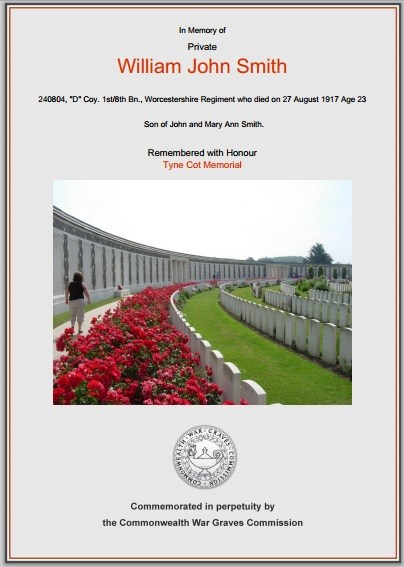 Private Joseph William Matthews 41250, Worcestershire Regiment