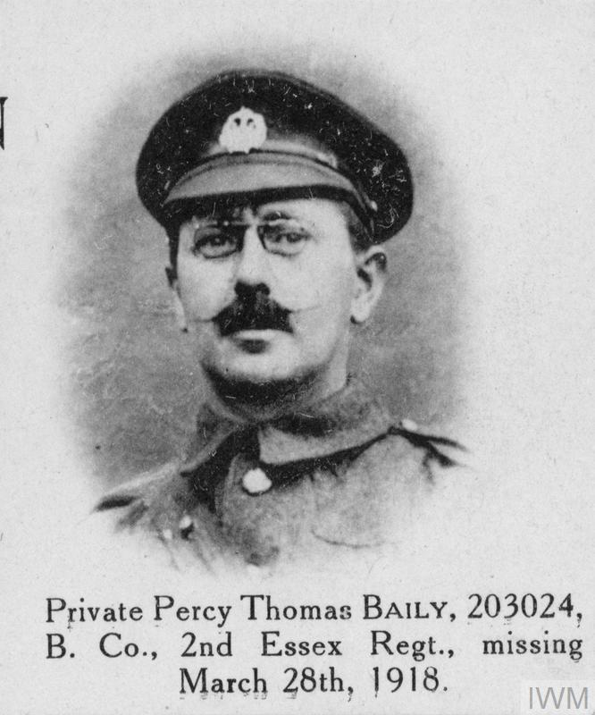 Private Percy Thomas Baily 330751/203024. Unit: Cambridgeshire Regiment, attached to B Company, 2nd Battalion, Essex Regiment. Death: 28 March 1918