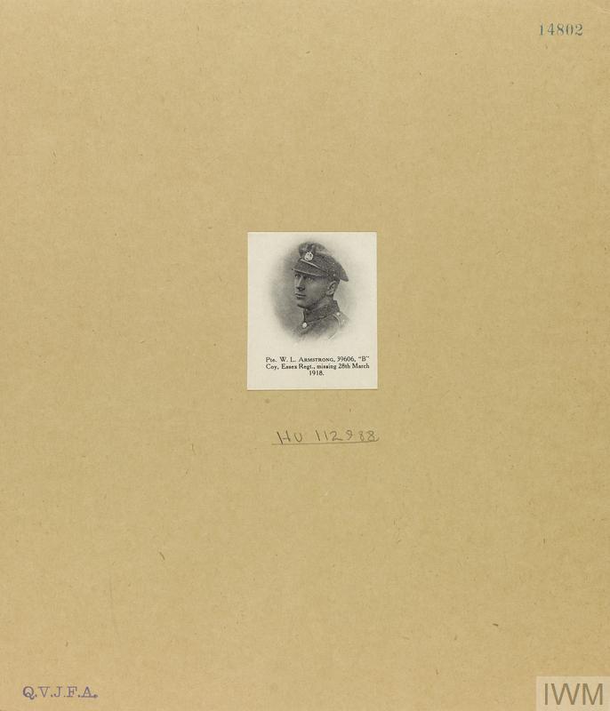Private William Leslie Armstrong 39606. Unit: B Company, 2nd Battalion, Essex Regiment. Death: 28 March 1918