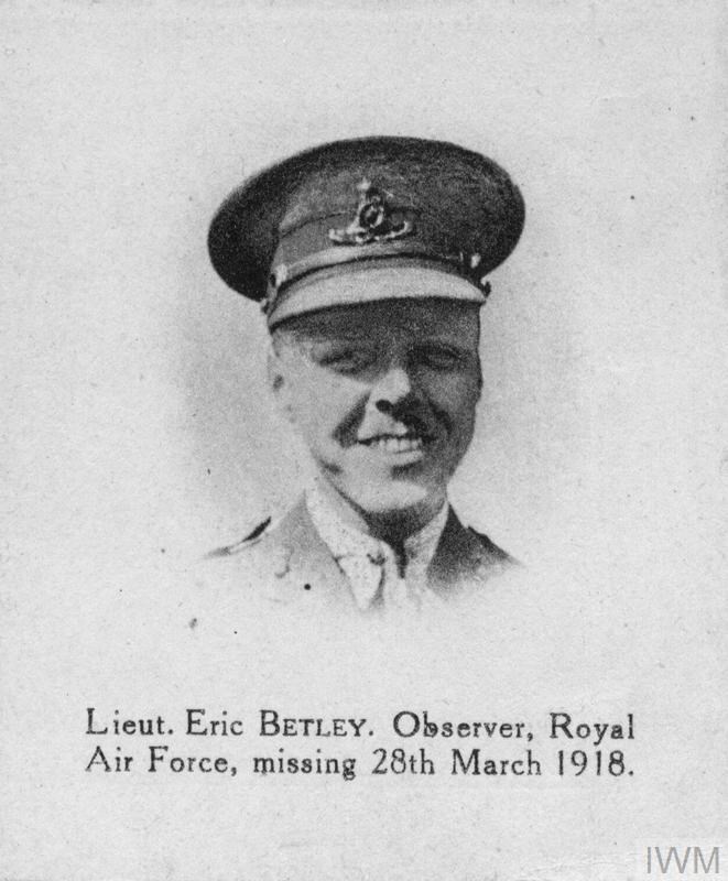 Lieutenant Eric Betley. Unit: Royal Garrison Artillery, attached to 82nd Squadron, Royal Flying Corps. Death: 28 March 1918