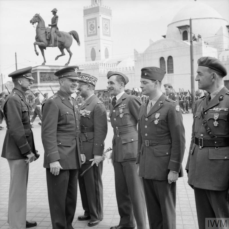 INVESTITURE CEREMONY FOR BRITISH, FRENCH, POLISH AND AMERICAN OFFICERS IN ALGIERS, 28 MARCH 1944