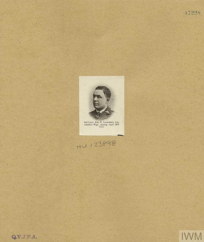 Second Lieutenant John Elliot Lavender. Unit: 10th Battalion, Lincolnshire Regiment. Death: 28 April 1917, Arras, Western Front. Commemorated on the Arras Memorial.