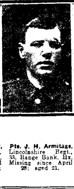 Private John Henry Armitage 20678, 4th Lincolnshire Regiment